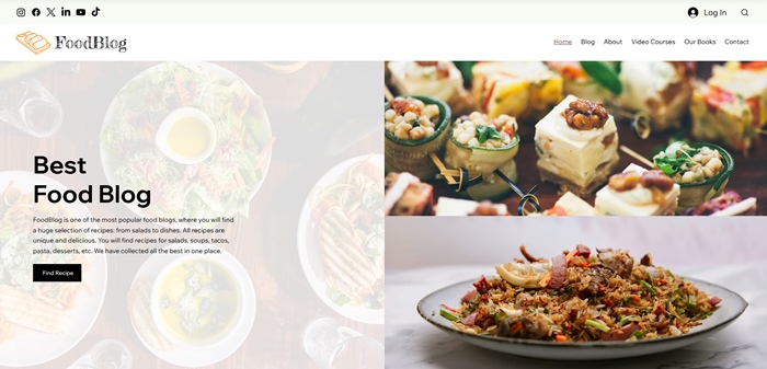 - A captivating homepage banner with up to three images, sections for recipes, video courses, book showcases.