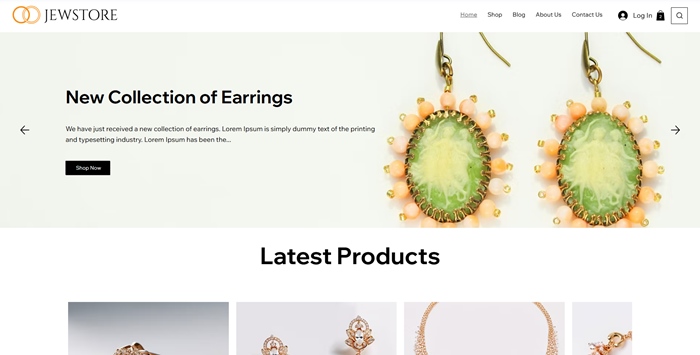 - Pages: Home, Store, Blog, About Us, Contact Us.