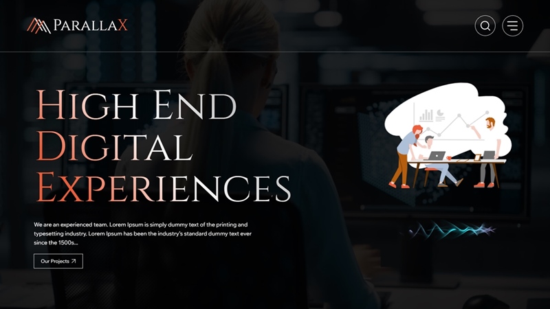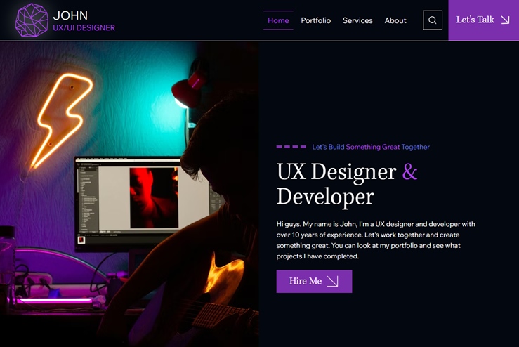 - Multi-layer scroll parallax, hover/scroll effects, full-width stripes, no-code design using Wix Studio.